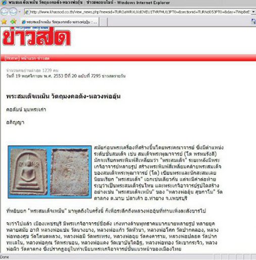 วันที่ 19 พฤศจิกายน พ.ศ. 2553 ปีที่ 20 ฉบับที่ 7295 ข่าวสดรายวัน
