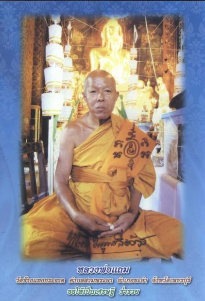 หลวงพ่อแถม วัดช้างแทงกระจาด ศิษย์หลวงพ่อทองศุข วัดโตนดหลวง เกจิฯ ผู้โด่งดังแห่งเมืองคนจริงเพชรบุรี ภาพนี้พุทธาภิเษกพร้อมเหรียญรุ่นเศรษฐี ซึ่งออกให้บูชาไม่นานแต่เป็นที่แสวงหากันมากทั้งในพื้นที่และส่วนกลาง ด้วยเป็นวัตถุมงคลซึ่งมีเจตนาบริสุทธิ์ คือรายได้เพื่อสมทบทุนสร้างอุโบสถหลังใหม่ วัดช้างแทงกระจาดให้แล้วเสร็จ วัตถุมงคลชุดนี้มีจำนวนสร้างที่ชัดเจน และรูปแบบที่สวยงาม เข้มขลังด้วยพุทธคุณ ตามแบบฉบับเกจิฯ สายเพชรบุรี อีกหน่อยจะต้องเป็นที่แสวงหากันอย่างแน่นอน ภาพนี้ผมได้มาจำนวนหนึ่งจึงอยากจะให้เป็นของขวัญปีใหม่สำหรับผู้ที่ต้องไปบูชาเพื่อความเป็นศิริมงคล จำนวน 19 ภาพ แจกท่านละ 1 ภาพเท่านั้นเพียงโพสชื่อที่อยู่ไว้ ผมจะจัดส่งให้โดยไม่คิดค่าใช้จ่ายครับ |