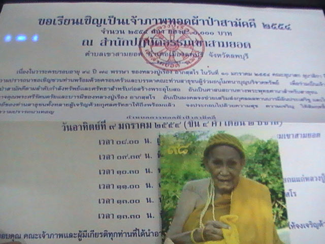.........จึงขอเรียนเชิญ ศิษยานุศิษย์ ลุกหลานและผู้ศรัทธาทุกท่าน ร่วมบุญทอดผ้าป่า **สร้างพระอุโบสถ** สำนักปฏิบัติธรรมเขาสามยอด ถวายแด่องค์ หลวงปู่เรือง อาภัสสโร พระอริยสงฆ์ที่แม้แต่ หลวงพ่อเพี้ยน วัดเกริ่นกฐินยังนับถือกราบท่านตลอดมา โดยจะจัดงานทอดผ้าป่าในวันอาทิตย์ที่ **9 มกราคม 2554**