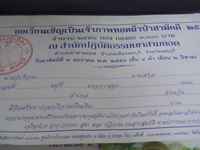เรียก ว่าถวายผ้าป่าก็ได้บุญแถมยังได้ร่วมสร้างพระอุโบสถหลังใหม่ ทางเว็บพุทธคุณขอเชิญทุกท่านมาร่วมทอดผ้าป่ากันในวันที่ 9 มกราคม 2554 ณ สำนักปฎิบัติธรรมเขาสามยอด ตำบลเขาสามยอด อำเภอเมือง จังหวัด ลพบุรี นะครับ