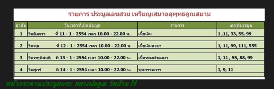 วันพุธที่ 12 มกราคม 2554 เวลา 10:00 น. - 22:00 น. เนื้อเงินลงยา หมายเลข 1 , 11 , 99 , 111 , 555