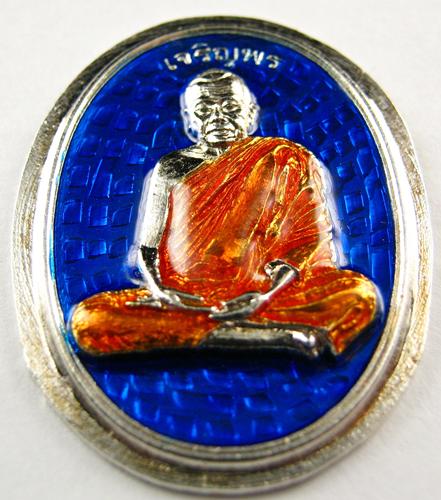 ตัวอย่างนี้เนื้อทองแดงไปชุบกะไหล่เงิน เพื่อทำการTest ลงยาสีน้ำเงิน จีวรเหลือง ซึ่งจะเป็นสีเหรียญ ในชุดกรรมการ ในรายการจะเป็นเนื้อเงิน ตัวอย่างนี้เพื่อให้เห็นรูปของ เชดสีน้ำเงิน |