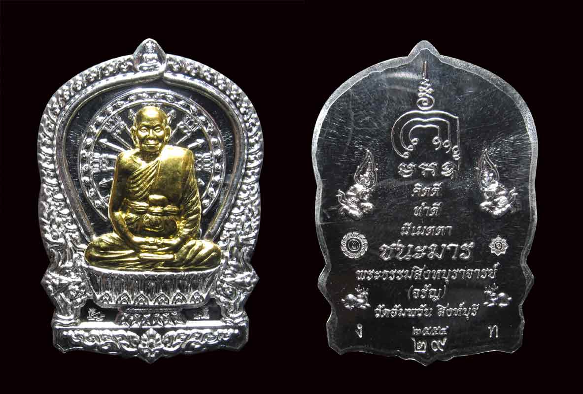 2. เหรียญนั่งพานชนะมารเนื้อเงินหน้าทอง นวะหน้าทอง นวะหน้าเงิน