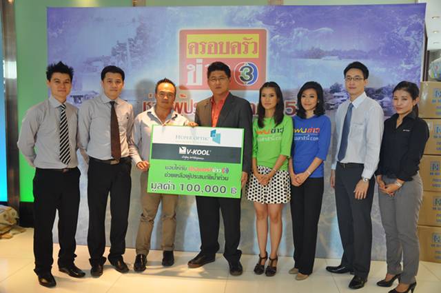 วันนี้ผมและเพื่อนพนักงานในนามบริษัทวีคูล คอร์ปอเรชั่น จำกัด ผู้นำเข้าและจัดจำหน่ายฟิล์มติดรถยนต์ภายใต้ยี่ห้อ V-KOOL ได้ไปมอบเงินช่วยน้ำท่วมที่ช่อง 3 ยอดเงินรวม 116,000 บาท พร้อมน้ำดื่ม 1 คันรถและอาหารแห้งมาม่า เก็บภาพมาฝากครับ
