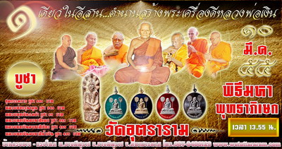 พิธีพุทธาพิเษก เริ่มเวลา 13.55 วันเสาร์ที่ 10 มีนาคม 2555 ที่วัดอุตราราม ต ยางสีสุราช อ ยางสีสุราช จ