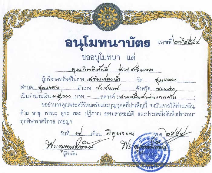 โดยสามารถลดหย่อนได้ไม่เกิน 10% ของรายได้หลังจากค่าใช้จ่ายและค่าลดหย่อนต่างๆแล้ว เช่น เงินได้หลังหักค่าใช้จ่ายแล้ว 500,000 บาท สามารถนำใบอนุโมทนาบัตรมาลดภาษีได้ถึง 50,000 บาทครับ