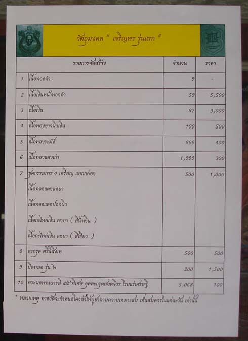 จำนวนเหรียญในการเปิดให้บูชาที่วัด ในวันแรก