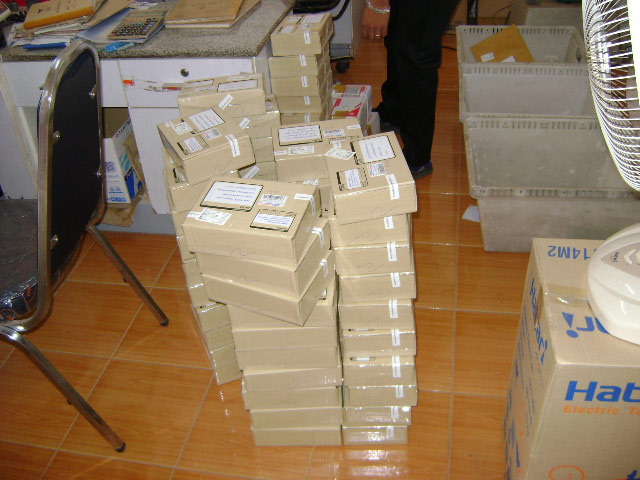 ชุดนี้ผมติดสติ๊กเกอร์ ems มาจากบ้านเลยเพื่อความรวดเร็ว แปะกล่่องแล้วถ่ายรูปเลย ดังนั้นจะมีที่อยู่ของแต่ละท่านแสดงด้วย แต่เพื่อความเป็นส่วนตัวในระดับหนึ่ง ผมได้ปกปิดหมายเลขที่บ้าน ชื่อองค์กรต่างๆไว้ แต่ที่อยู่เป็นที่เดียวกันกับที่ท่านแจ้งผมมาครับ