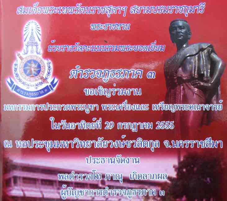 โบชัวร์ออกอย่างเป็นทางการแล้วครับ เริ่มแจกกันที่หอประชุมกองทัพเรือเมื่อวันอาทิตย์ที่ผ่านมาก็เลยโพสต์มาให้ชมกัน... เป็นสนามที่ 2 ของพระในชุดสร้างบารมี 54 ของหลวงปู่บัวได้เข้าสู่เวทีงานประกวดของสมาคมคราวนี้ที่โคราชครับ ท่านผู้บัญชาการตำรวจภูธรภาค 3 พลตำรวจโท ภาณุ เกิดลาภผล เป็นประธานในการจัดงานครับ |
