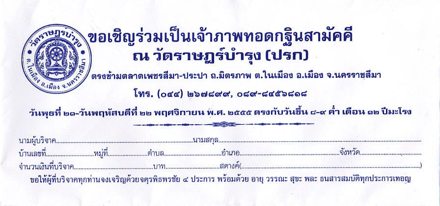 | หัวข้อกระทู้ : ***** ขอเรียนเชิญร่วมเป็นเจ้าภาพทอดกฐินสามัคคี ณ.วัดราษฏร์บำรุง ( ปรก ) ***** |