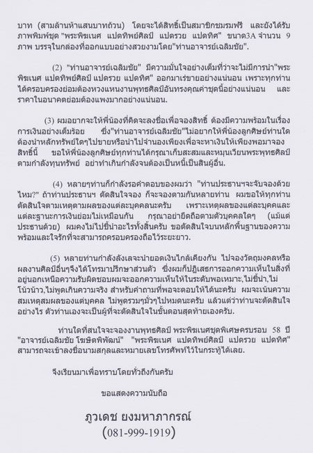 เนื่องในโอกาสครบรอบอายุ ๕๘ ปี จำนวน ๕๘ ชุด ตามคำร้องขอของผู้สะสม และ ลูกศิษย์ ทั้ง Art collector และ คนในวงการพระฯ ครับ
