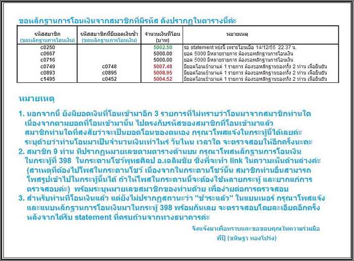...สมาชิกรหัสดังต่อไปนี้ ขอให้แสดงหลักฐานการโอนเงินค่าสมาชิก ด้วยค่ะ...