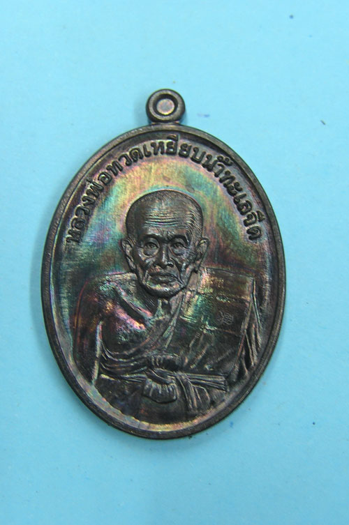 เหรียญทองแดงแต่ผิวปีกแมลงทับแทบทุกเหรียญ ขอชมผู้จัดสร้างครับ ทำงานออกมาได้ดี เส้นสายในผิวเหรียญมีเสน่ห์ ผิวเหรียญสวย เยี่ยมครับ |