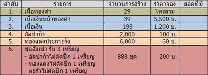 รายการที่3. เนื้อเงิน สร้าง 199 เหรียญ