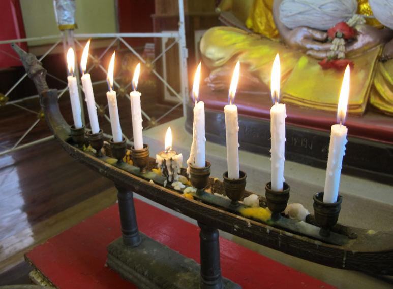 เทียน 9 เล่ม มีเล่มที่เหลือ 8 เล่ม อีก 1 เล่มอยุ่ตรงกลาง