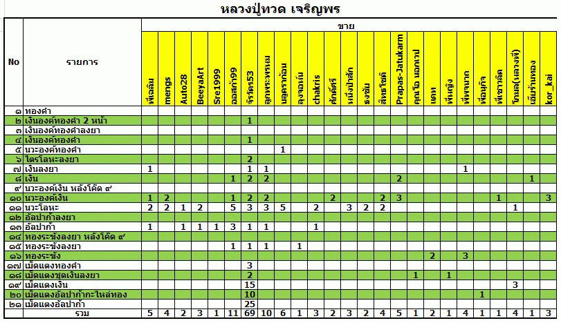 ปล. ในตารางสำหรับบางท่านที่ไม่มีชื่อผมได้ส่งรายละเอียดในMailboxท่านแล้วนะครับผม กรุณาตอบกลับเพื่อยืนยันยอดอีกครั้งด้วยครับ