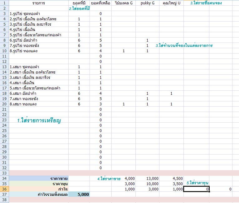 3.ใส่รายชื่อคนจอง (ใส่ได้สูงสุด 30 คน) และจำนวนที่จองในแต่ละรายการ