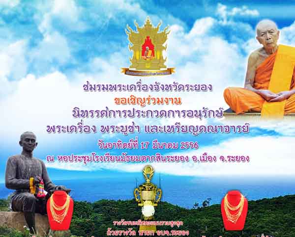 ขอเชิญร่วมงาน นิทรรศการประกวดการอนุรักษ์ พระเครื่อง พระบูชา และเหรียญคณาจารย์ จังหวัดระยอง