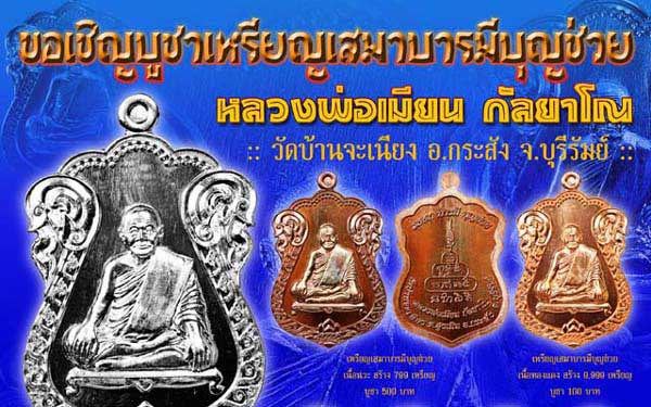 สนใจบูชาที่วัดบ้านจะเนียง โทร. 087-586-7686 หลวงพ่อต่อ กรุงเทพฯ โทร.บูชาได้ที่ โทร. 084-730-6229 ครับ |