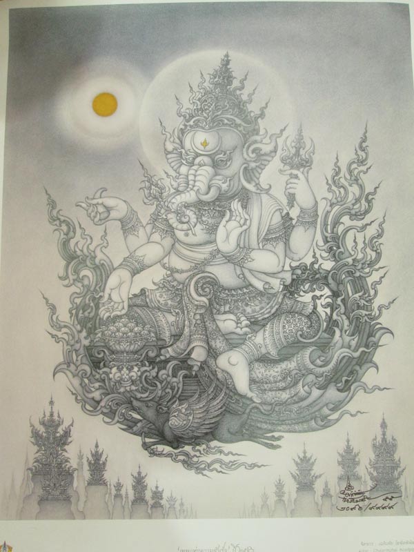 อยากให้เก็บๆ กันไว้บ้างนะครับ ยังมีอะไรให้ได้ตื่นเต้นกันอีกนะครับ กระผมว่า เพราะเมื่อพระพิฆเนศเนื้อเงินออกมาแล้ว หากท่านอาจารย์เริ่มออกเนื้อเงินที่เลข ๑๐๐๑ เหมือนเนื้อทองเหลือง กระแสการจับคู่กับภาพในเลขต้นๆ ก็จะกลับมาอีกรอบ และตอนนั้นอาจจะส่งผลกับราคาภาพพิมพ์บ้างไม่มากก็น้อยครับ
