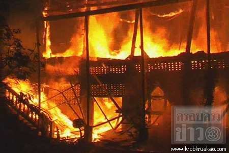 ไฟไหม้ศาลาไม้สัก วัดน้อยแสงจันทร์ สมุทรสงคราม