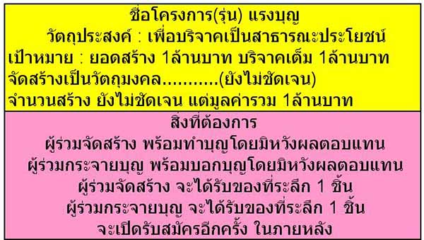 พวกเราชาวพระเครื่อง ทำบุญกับวัดมามาก เพราะการสั่งจองวัตถุมงคลครั้ง ไม่ว่าจะมากน้อย ก็คงมีส่วนที่วัดได้(บ้าง)