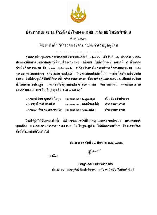 ขอแสดงความยินดีกับพี่กอไก่ และพี่ๆทั้ง3คน ที่ได้ความเห็นชอบร่วมจากชมรมอนุรักษ์ศิลปไทยร่วมสมัย อาจารย์เฉลิมชัย โฆษิตพิพัฒน์ แต่งตั้งเป็นตำรวจกระดาน