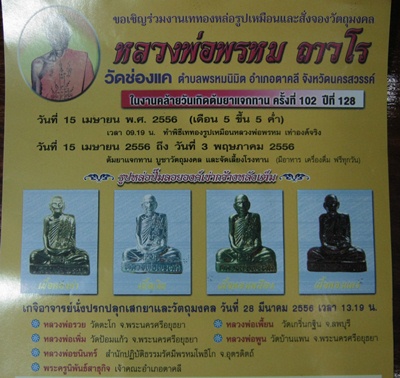 ขอเชิญศิษยานุศิษย์ร่วมงาน หลวงพ่อพรหม งานต้มยา 102 ปี วันที่ 15 เมษายน 2556 ที่วัดช่องแคครับ