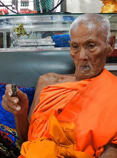 และนี่ก็เป็นภาพหลวงปู่เท หยิบหลวงปู่ทวดองค์ที่ท่านภาวนาทุกวัน จนถึงกลับสัมผัสญาณของหลวงปู่ทวดได้มาให้ลูกศิษย์ดู ซึ่งตัวท่านเองบอกว่าท่านนั้นศรัทธามากและเก็บกับตัวตลอดเวลา |