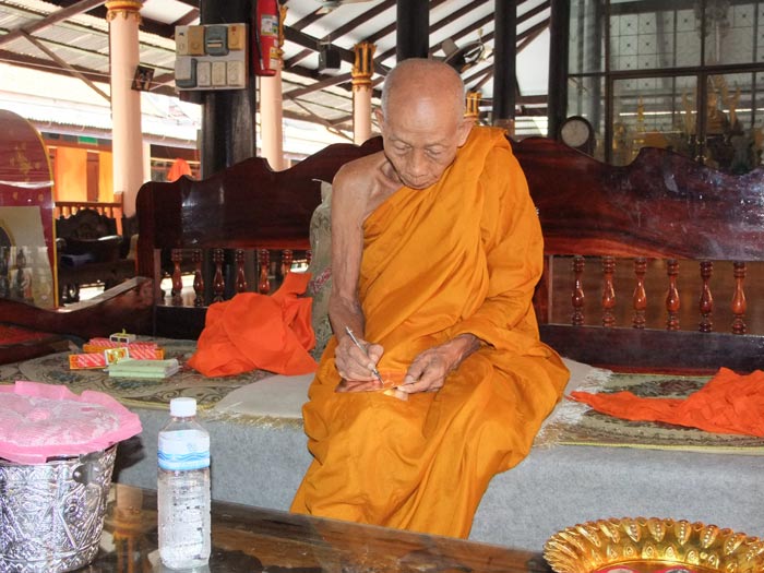 หลวงปู่ใจดีมากครับ เมตตาจารและเสกแผ่นชนวนมวลสารให้ และนั่งสนทนากับหลวงปู่ หลวงปู่ท่านบอกว่าท่านเป็นศิษย์ลิเกคณะศรีนวล สมัยก่อนคณะลิเกไม่มีผู้หญิง ท่านได้แสดงเป็นนางเอกของคณะ และหลวงปู่เล่าเรื่องในอดีตให้ฟัง มีโอกาสคราวหน้าจะไปนั่งสนทนาธรรมกับหลวงปู่ต่ออีกครับ