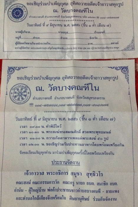 ประกาศข่าวบุญ ทำบุญอุทิศส่วนกุศลให้อดีตเจ้าอาวาสวัดบางคณฑีใน ทั้งหมด