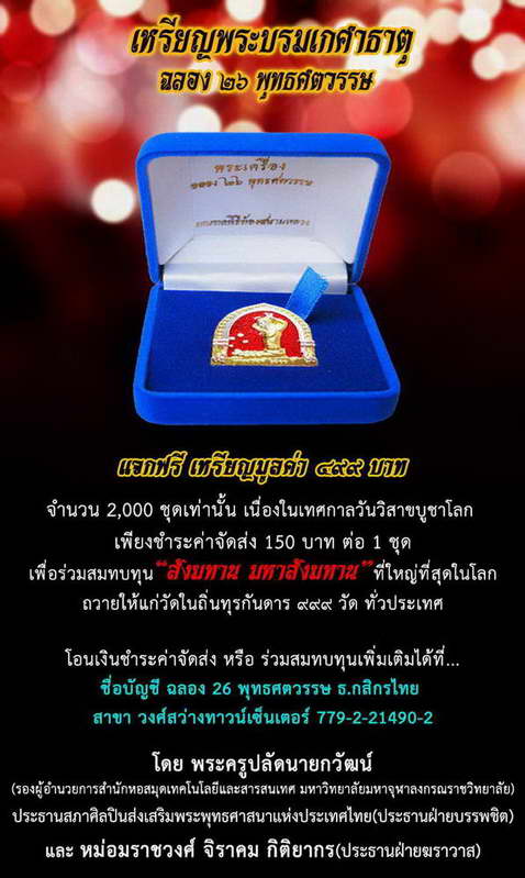 ชื่อบัญชี ฉลอง 26พุทธศตวรรษ ธ.กสิกรไทย