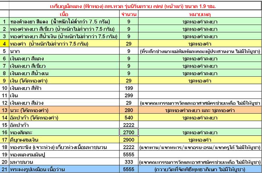 จากกระทู้ครั้งก่อน...ได้สอบถามทางคุณพิภพ16 เพื่อความถูกต้อง และปรับปรุงตารางจัดสร้าง ลพ.ทวด รุ่นนิรันตราย ๗๗ ครับ..