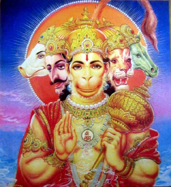 เศียรที่ห้า เป็นเศียรแห่งท่านฮายากรีวา หนุมานนะคะ และท่านจะหันมองขึ้นไปทางฟากฟ้่านะคะ ท่านฮายากรีวา คือปางแห่งพระนารายณ์ที่มีเศียรเป็นม้่านะคะ กล่าวกันว่าท่านฮายากรีวา จะประทานปัญญาอันชาญฉลาดแก่ผู้ขอพร และจะประทานอภิชาตบุตรแก่ผู้สวดขอพรนะคะ