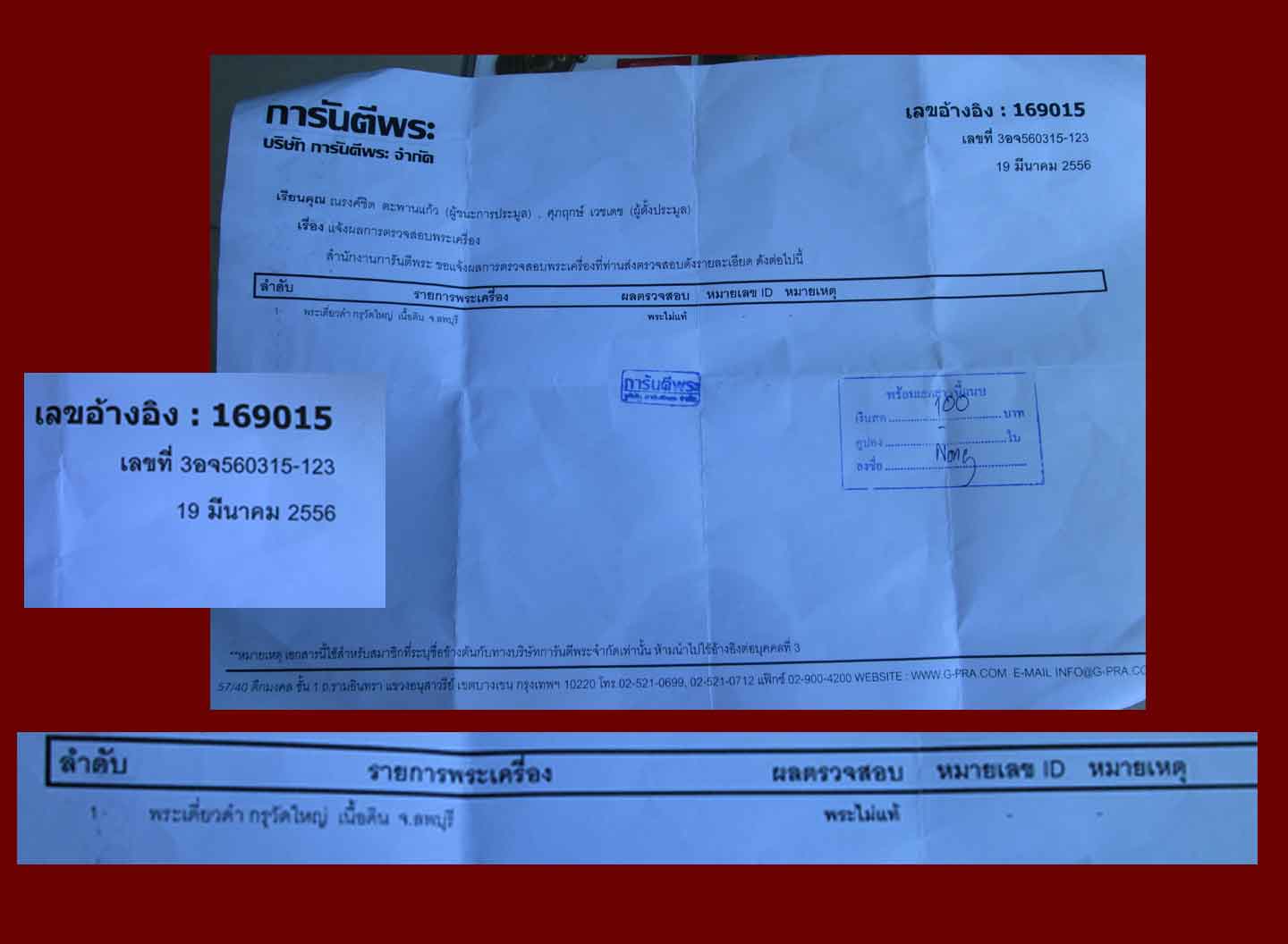 มาเมื่อ 13กพ.ปี51(ตอนนั้นผมใช้ยูเซอร์เนม พงษ์พันธ์) ราคา 19999บาท ปรากฏว่า เป็นพระปลอม จากการตรวจสอบ ทั้งส่งจีพระ และส่งประกวดงานประกวดก็ไม่รับพระ!!! ผมพยามติดต่อเจ้าของเดิมโดยการส่งเมล์แต่ก็ไม่ตอบกลับครับ