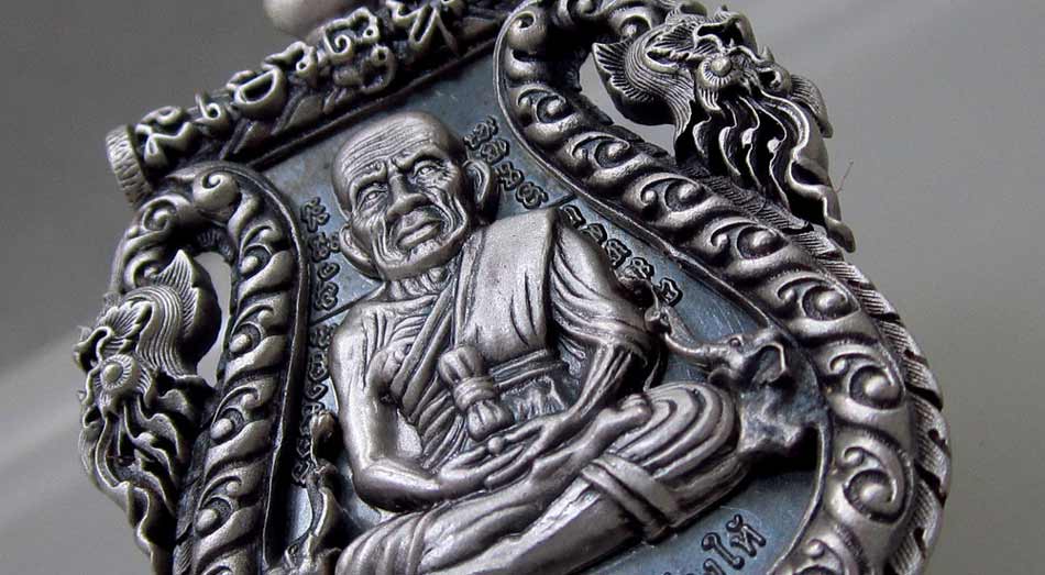 ..เนื้อเงินรมดำซาติน..พิมพ์หน้าเลื่อน ฝังตะกรุดทองคำยันต์รับทรัพย์..