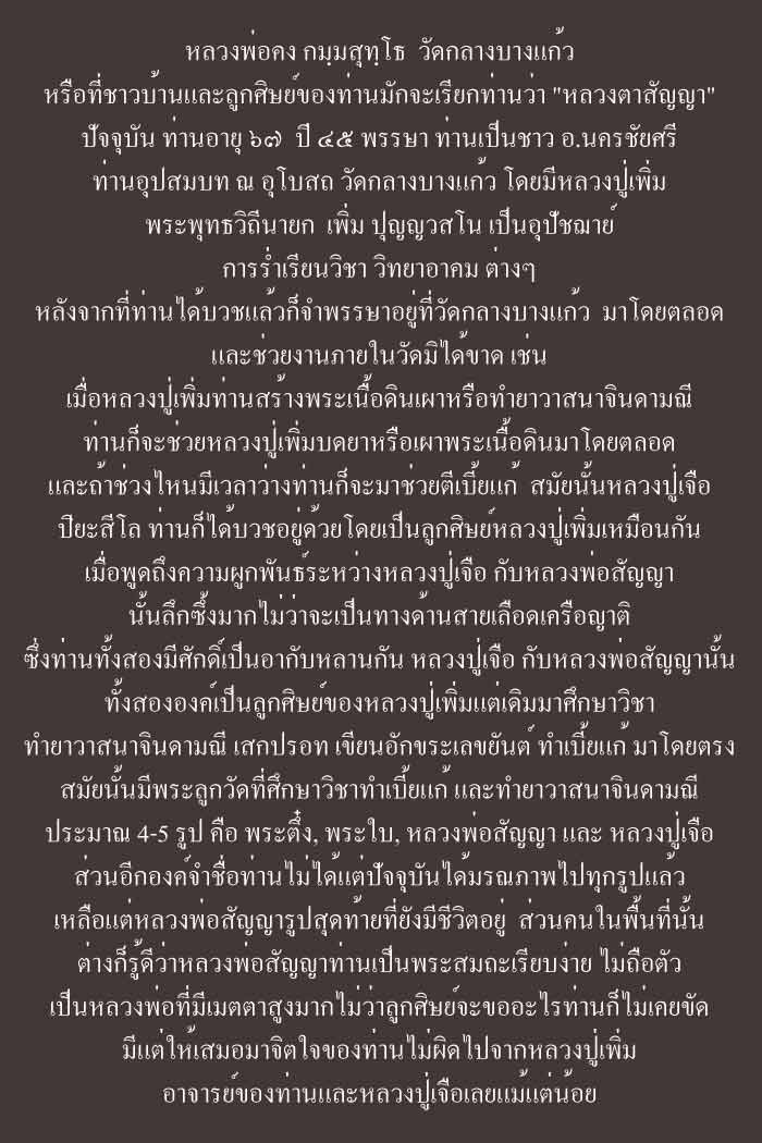 ผมเชื่อ ว่า หลายๆท่าน คงเคยเข้าไปกราบนมัสการ หลวงพ่อคง ที่ชาวบ้านเรียกกันติดปาก หรือ หลวงตาสัญญา ที่หลายๆท่านรู้จักกันดี ครับ
