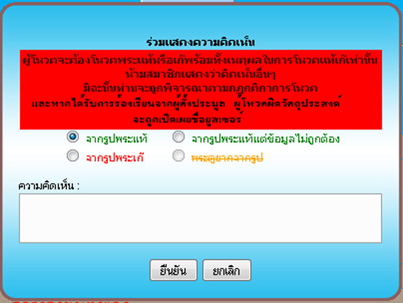 ซึ่งการโหวตนั้นในจุดประสงค์ของกฎผมยังมีความเห็นว่ามีประโยชน์ ในกรณีผู้มีความรู้มาช่วยสอดส่องดูแล ในกรณีสมาชิกนำพระไม่แท้หรือข้อมูลไม่ถูกต้องมาประมูล