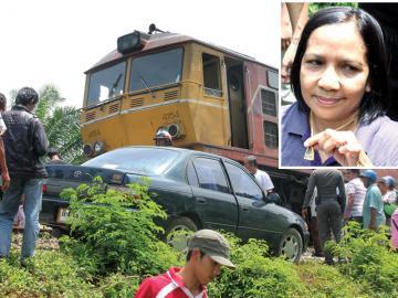 ตะลึงอดีตครูสาวใหญ่รอดตายปาฏิหาริย์ หลังรถไฟพุ่งชนรถเก๋งที่ตัวเองขับจนพังยับเยินที่เมืองตรัง เผยขับรถมุ่งหน้ากลับบ้าน