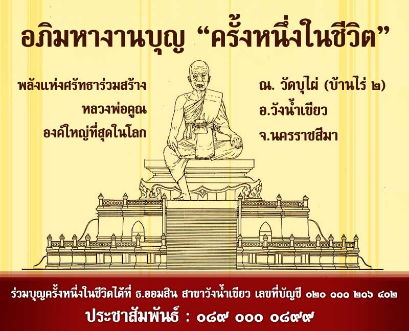 "ครั้งหนึ่งในชีวิต" ที่ได้สัมผัส >>> หลวงพ่อคูณ องค์ใหญ่ที่สุดในโลก