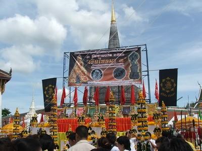 ความว่า>>เมื่อวานนี้ (๒๒ ก.ค.๕๐) ทำพิธีพุทธา-เทวาภิเษก ณ วิหารหลวง วัดพระมหาธาตุ งานนี้ใหญ่มากครับ มีรุ่นต่างๆ มาขอร่วมพิธีอีกจำนวน ๔๓ รุ่น รวมวัตถุมงคลที่ทำพิธีเมื่อวานทั้งหมด ๔๔ รุ่น เริ่มพิธีบวงสรวงเวลา ๑๐.๓๙ เริ่มสวดมนต์พุทธา-เทวาภิเษก เวลาประมาณ ๒๐.๓๙ น. เสร็จพิธีเวลาประมาณ ๒๒.๓๙ พอพระเริ่มสวดชยันโต ประทัดนัดแรกดังฝนตกหนักเลยครับ พอประทัดดับฝนก็หยุดชั่วคราวและหลังจากที่เกจิอาจารย์ที่มาทำพิธีและแขกผู้ร่วมงานเดินทางกลับหมดแล้ว ฝนก็ตกลงมาอีกจนถึงเช้าวันที่ ๒๓ เลยครับ |