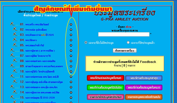 เพิ่มสัญลักษณ์เป็นรูปลูกศรอยู่ทางขวามือของหมวดรายการประมูล