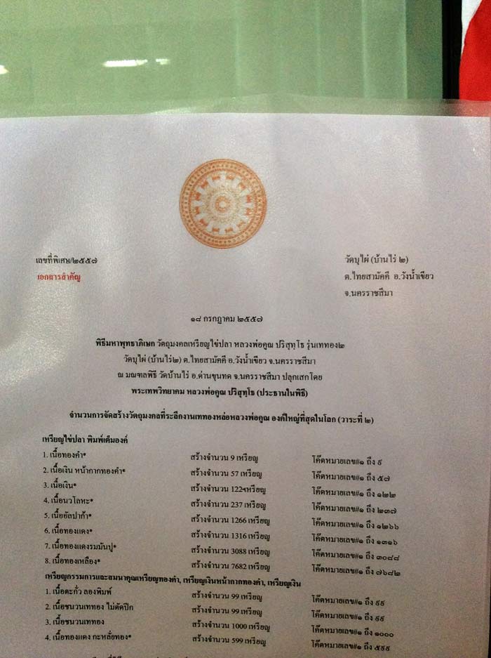 วาระการเททองหลวงพ่อคูณ องค์ใหญ่ที่สุดในโลก วาระที่ ๒ ณ วัดบุไผ่ (วัดบ้านไร่๒) อ.วังน้ำเขียว จ.นครราชสีมา