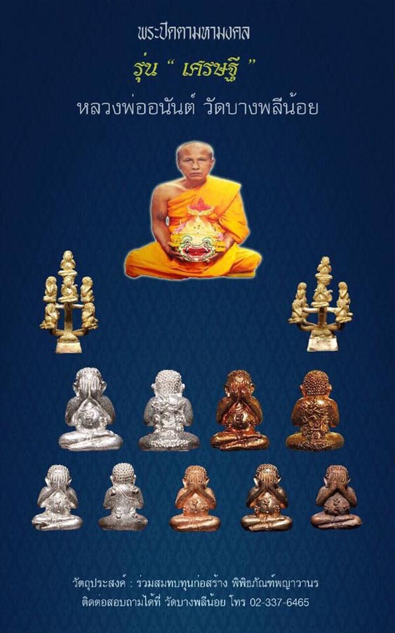 """พระปิดตามหามงคล รุ่นเศรษฐี""" ถือว่าเป็นวัตถุมงคลที่ได้รับความสนใจเป็นอย่างมากในบรรดาลูกศิษย์ของหลวงพ่ออนันต์ เจ้าอาวาสวัดบางพลีน้อย ต.บางพลีน้อย อ.บางบ่อ จ.สมุทรปราการ