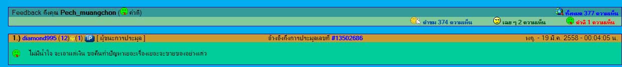 คำถามคือ ผู้ชนะประมูลทิ้งการประมูลโดยไม่แจ้งและไม่มีการตอบกลับ แต่พอตอบกลับมา เจอแบบนี้ ทั้งๆ ที่แจ้งและส่งข้อความบอกแล้วบอกอีก แต่มาให้เหตุผลผมแบบน้ เป็นพี่ ๆ จะรู้สึกอย่างไร