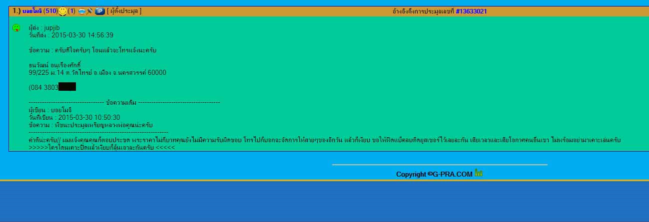 พี่เค้ามาปิดชนะประมูลได้ แต่ปิดแล้วเงียบไป 5 วันผมก็ส่งเมลล์บอกแล้วว่าชนะประมูล แต่กลับตอบกลับมาแบบประชดว่าครับดีใจครับ ผมรอวันที่ 8จึงโทรถาม ว่ารายการที่พี่ชนะยังสนใจรึเปล่า ก็บอกว่าสนใจจะโอนให้พรุ่งนี้ ช่วงสายๆ ผมรออีก 1 วัน ก็เงียบจึงให้ฟีดแบ็คไป ช่วงประมาณบ่าย2 มียอดเงินโอนมาแล้วดทรมาว่าโอนเงินให้แล้ว ช่วยแจ้งเว็บมาสเตอร์ให้ด้วยเรื่องฟีดแบ็คลบ ผมก็แจ้งไปแล้ว แต่ตรงนี้ขึ้นอยู่กับการพิจารณาของเว็บมาสเตอร์ครับ ผมไม่มีอำนาจลบคำติได้ พี่เค้าจึงมารยาทดีให้คำติลบผมมา เนื่องจากอะไรไม่ทราบ ///พูดไปก็แค่เป็นการพูดฝ่ายเดียวครับ ฝากพี่ๆพิจารณาจากรูปน่ะครับ |