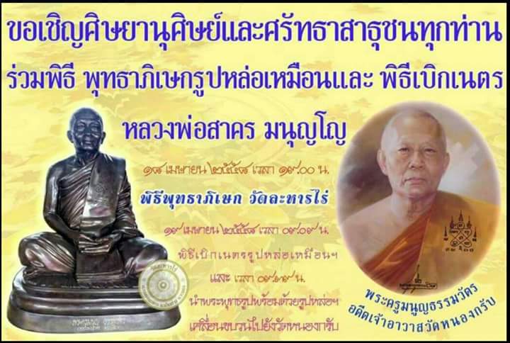 | หัวข้อกระทู้ : ขอเรียนเชิญศิษยานุศิษย์ผู้เคารพรักศรัทธาร่วมพิธีอันเชิญรูปเหมือนหลวงพ่อสาคร กลับวัดหนองกรับ |