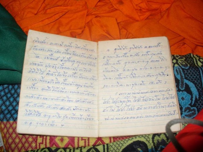 ของหลวงปู่สนธิ์ ปภสฺสโร พระเกจิอาจารย์ชื่อดังแห่งเมืองสระแก้วที่มีชื่อเสียงด้านพุทธาคมเลขยันต์ ตำรา หลวงปู่ 3เล่ม มีเล่มใหญ่ จะเป็นตำรายันต์โบราณ เล่มกลาง เป็นตำรายันต์พิชัยสงครามและวิชาบ้างส่วน เล่มเล็ก เป็นวิชาอาคม ทั้งหมด ครับ ตำราเล่มนี้ หลวงปู่ บอกว่าคัดลอกมาจากใบลานโบราณเก่า เเละเรียนจากพระเขมร สมัยอยู่ที่วัดท่าพาณิชย์ ตั้งเเต่5พรรษา และยังได้เดินทางไปเรียนวิชาอาคมที่ พระตะบอง ประเทศเขมร 1พรรษา และมาฝากตัวเป็นศิษย์เอกหลวงพ่อทอง วัดสระแก้ว หลวงพ่อทอง ไปไหน จะเรียกหลวงปู่สนธิ์ ติดตามไปด้วย คู่กับหลวงพ่อมี วัดถ้ำเขาฉกรรจ์