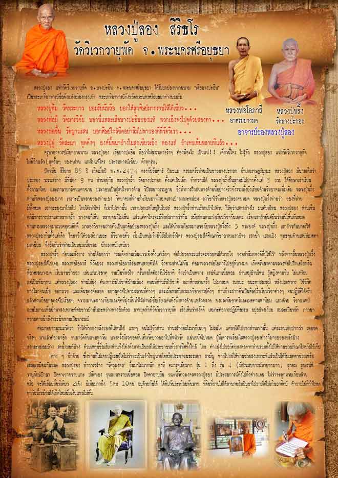 ..... ครูบาอาจารย์เรียกขานนาม หลวงปู่ลอง เสือบางปะอิน ถือว่าไม่ธรรมดาจริงๆ ต้องมีอะไร เป็นแน่ !! เดี๋ยวนี้ใคร ไม่รู้จัก หลวงปู่ลอง แห่งวัดวิเวกวายุพัด ไม่มีอีกแล้ว ( พูดสั้นๆ ของๆท่าน แรงไม่แพ้ใคร ประสบการณ์เฉียบ ดังทุกรุ่น )