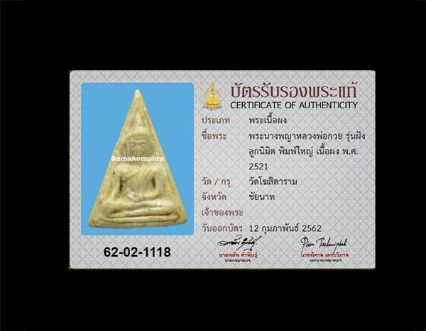 พระนางพญาหลวงพ่อกวยสร้างมาหลายรุ่นและรุ่นฝังลูกนิมิต พ.ศ.2521 เป็นพระที่ทันหลวงพ่อปลุกเสกสถาบันหลักของวงการพระเครื่องสมาคมผู้นิยมพระเครื่องพระบูชาไทยและนิตยสารพระท่าพระจันทร์ให้การยอมรับ ราคายังไม่แพงนัก เหมาะสำหรับติดต่อเจรจาในเรื่องสำคัญ การค้าขาย เพื่อให้คนนิยมชมชอบ มีเสน่ห์เป็นที่ประทับใจของผู้พบเห็นครับ |
